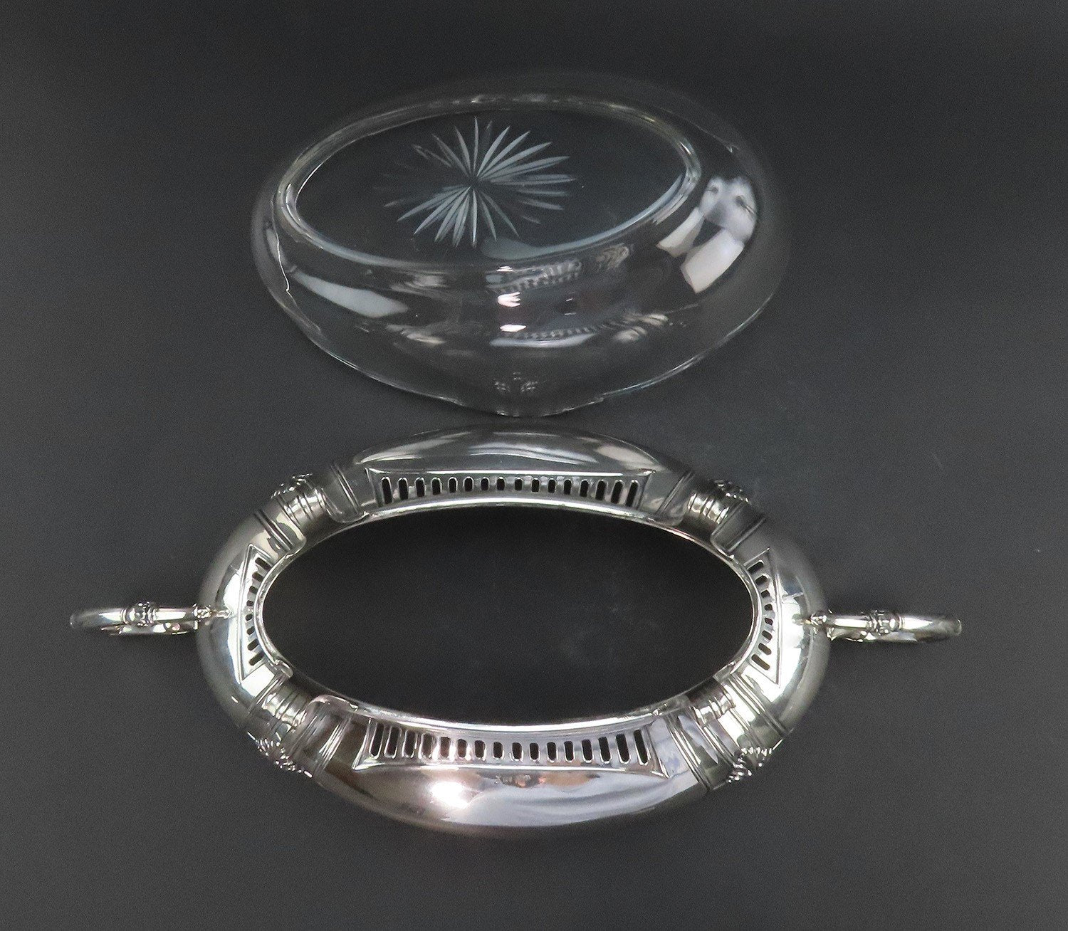 This piece is in excellent condition. The glass has no chips, no cracks, no cloudiness, no damage of any sort. The silver has no splits, no dents, no breaks, no monograms, no monogram removals, and no repairs.