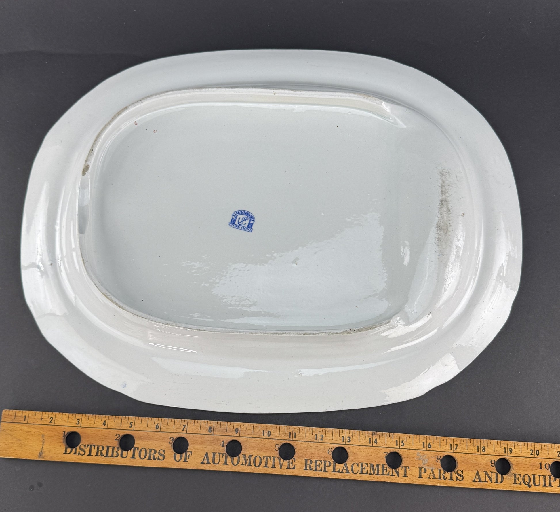 The platter is stamped on the reverse with the second oldest used Davenport mark, used circa 1805-1820.