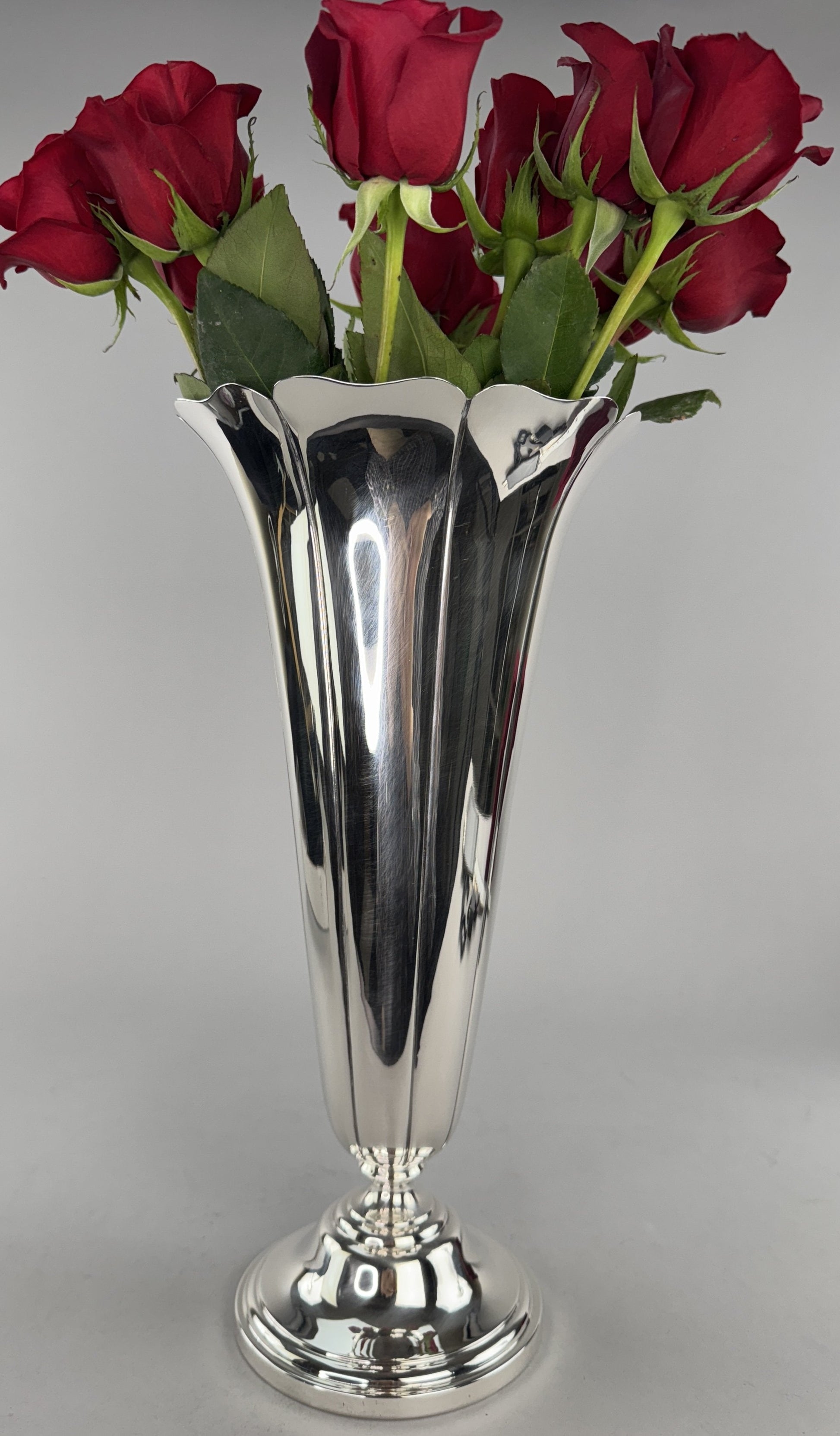 Impressive Watson Sterling Silver 14" Flower Form Floral Tall Trumpet Vase