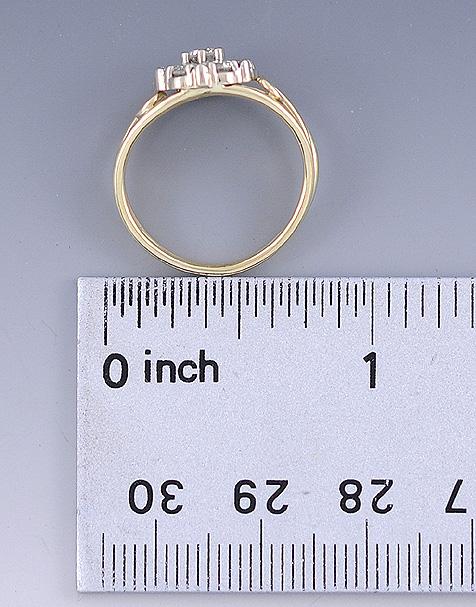 Presented is a beautiful 14 karat gold and diamond rosette ring. The ring is set