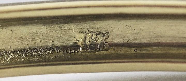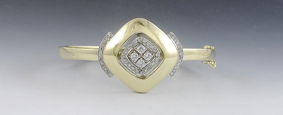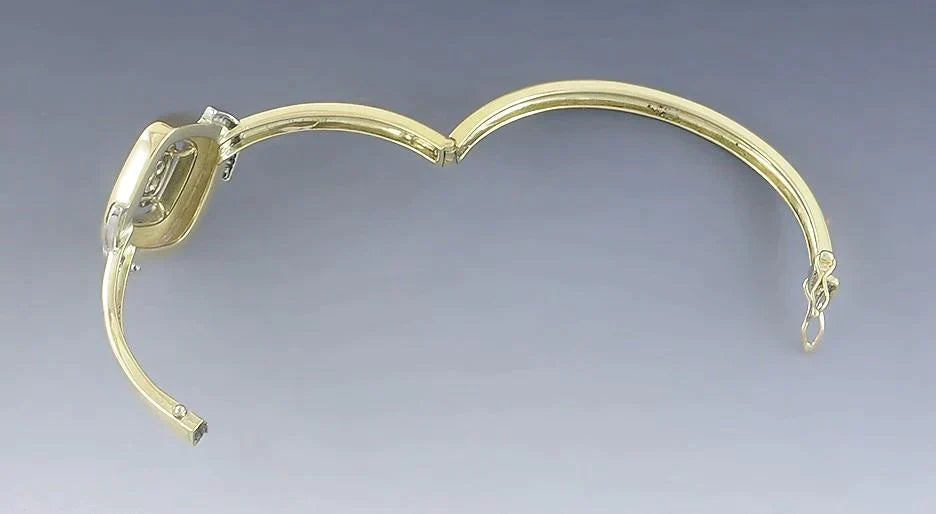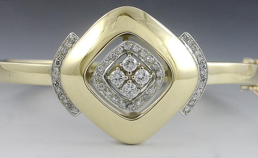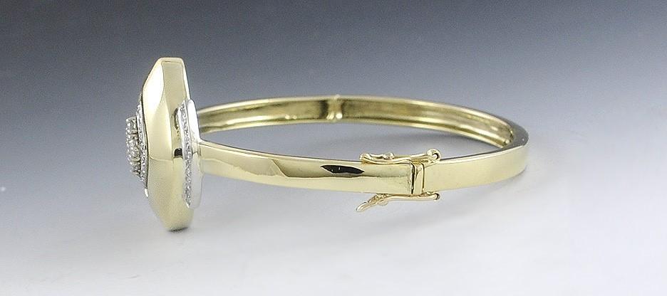 design with a deep yellow color to the gold. The face of the bracelet is set