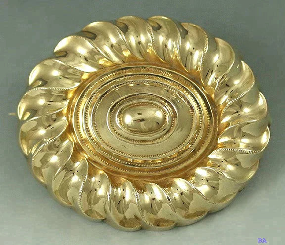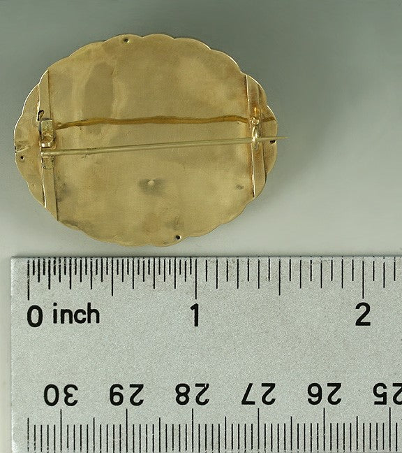 Interesting 14k Yellow Gold c1840s Victorian Oval Brooch/Pin