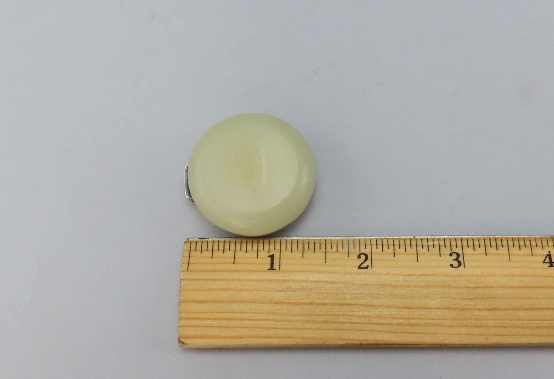 The box measures about 1 3/8 inches in diameter. This piece weighs 24.8 grams. -jm