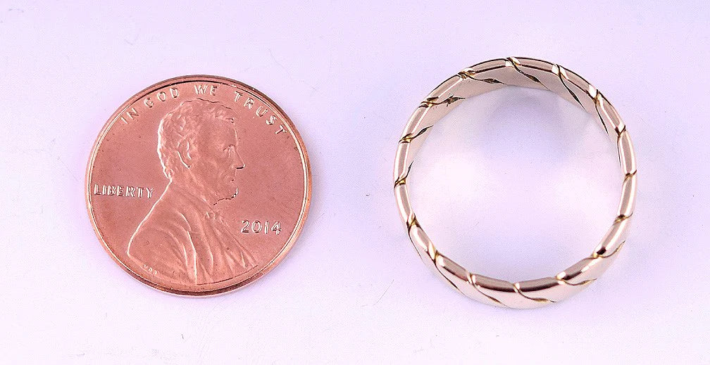 Interesting Shining 14k Yellow Gold Ring Band w/ Joined “S” Shapes, Size 7 1/2