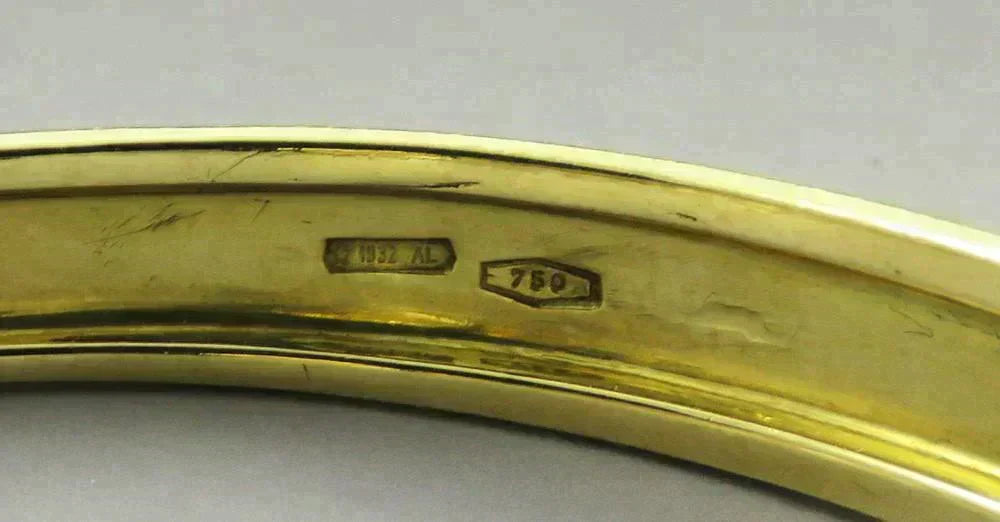 The inside bears an Italian 750 hallmark for 18 karat gold purity. Tested and guaranteed to be 18 karat gold purity.
