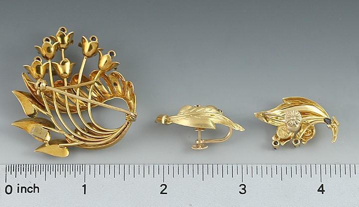 Italian 18K Yellow Gold & Sapphire Pin and Earrings Set