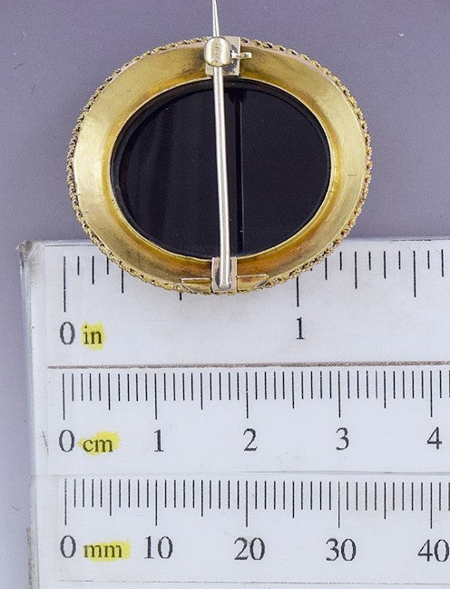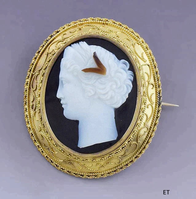 Italian Antique Mid 1800's Carved Hard Stone Cameo 14K Gold Pin