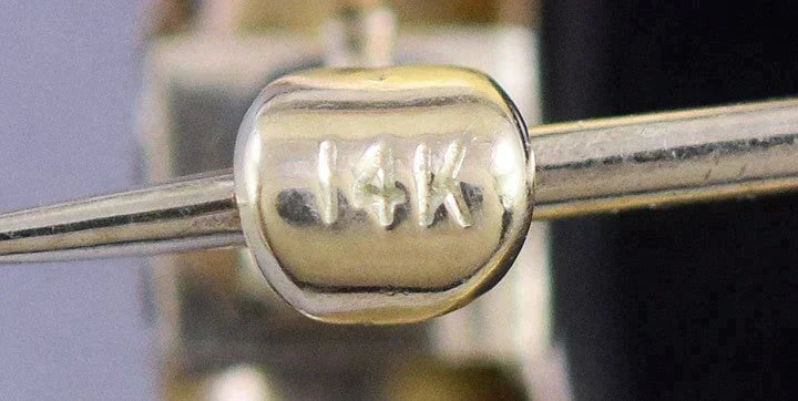 The clasp is marked 14K. The frame itself has been tested with nitric acid and is guaranteed to be 14 karat gold purity.