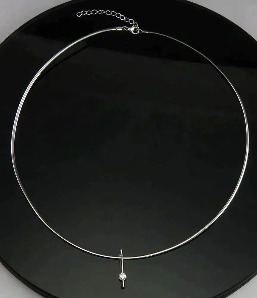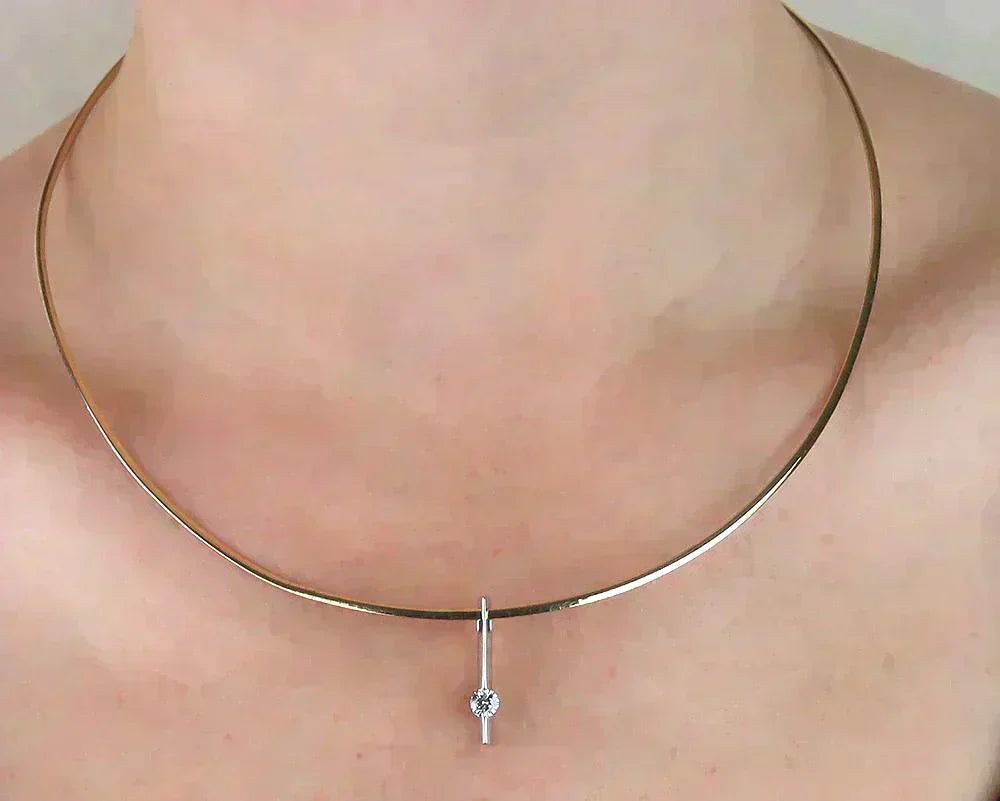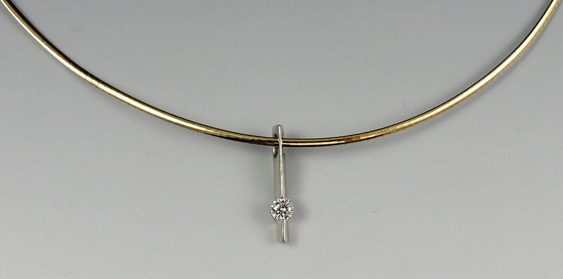 Italian Platinum 14K Gold & Modern VVS Diamond Choker Style Necklace w/ Pendant