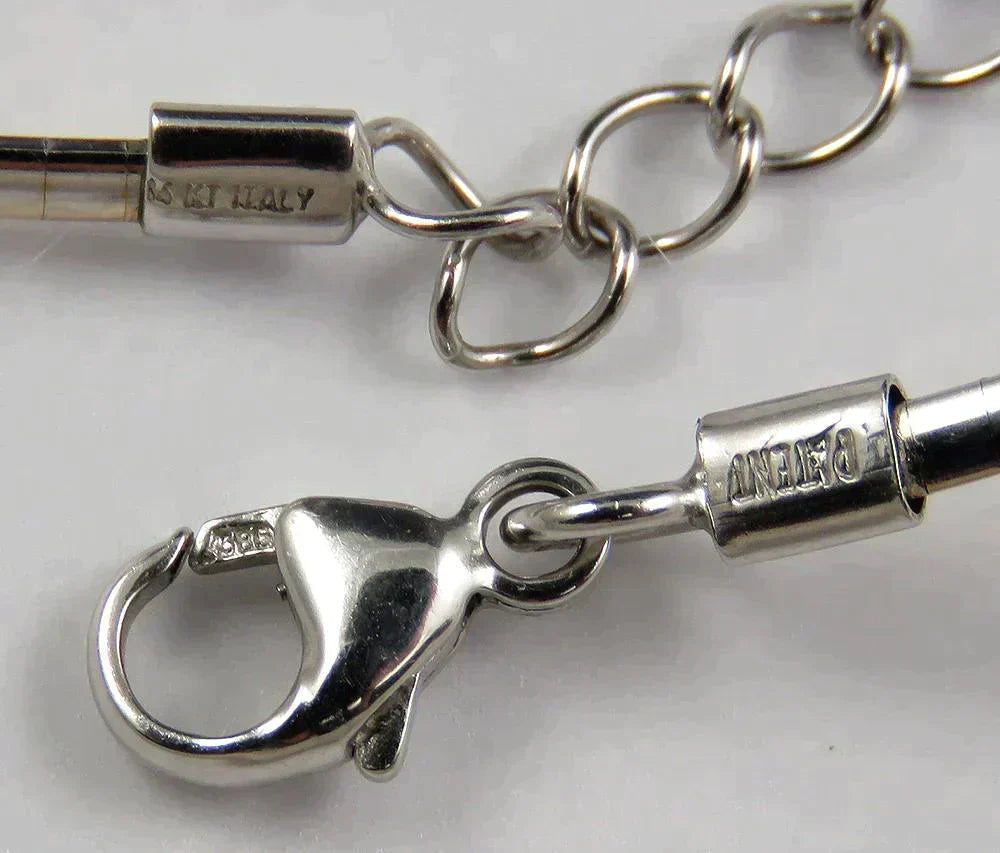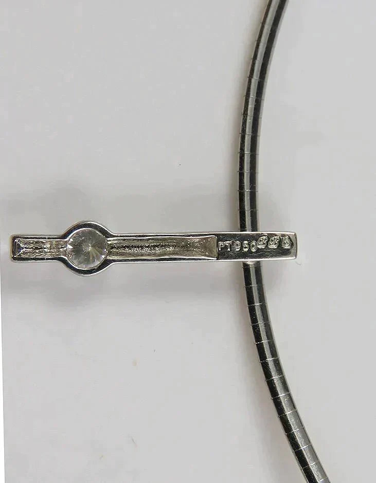 The pendant is marked 950 for platinum. The necklace is marked Italy and 14K.