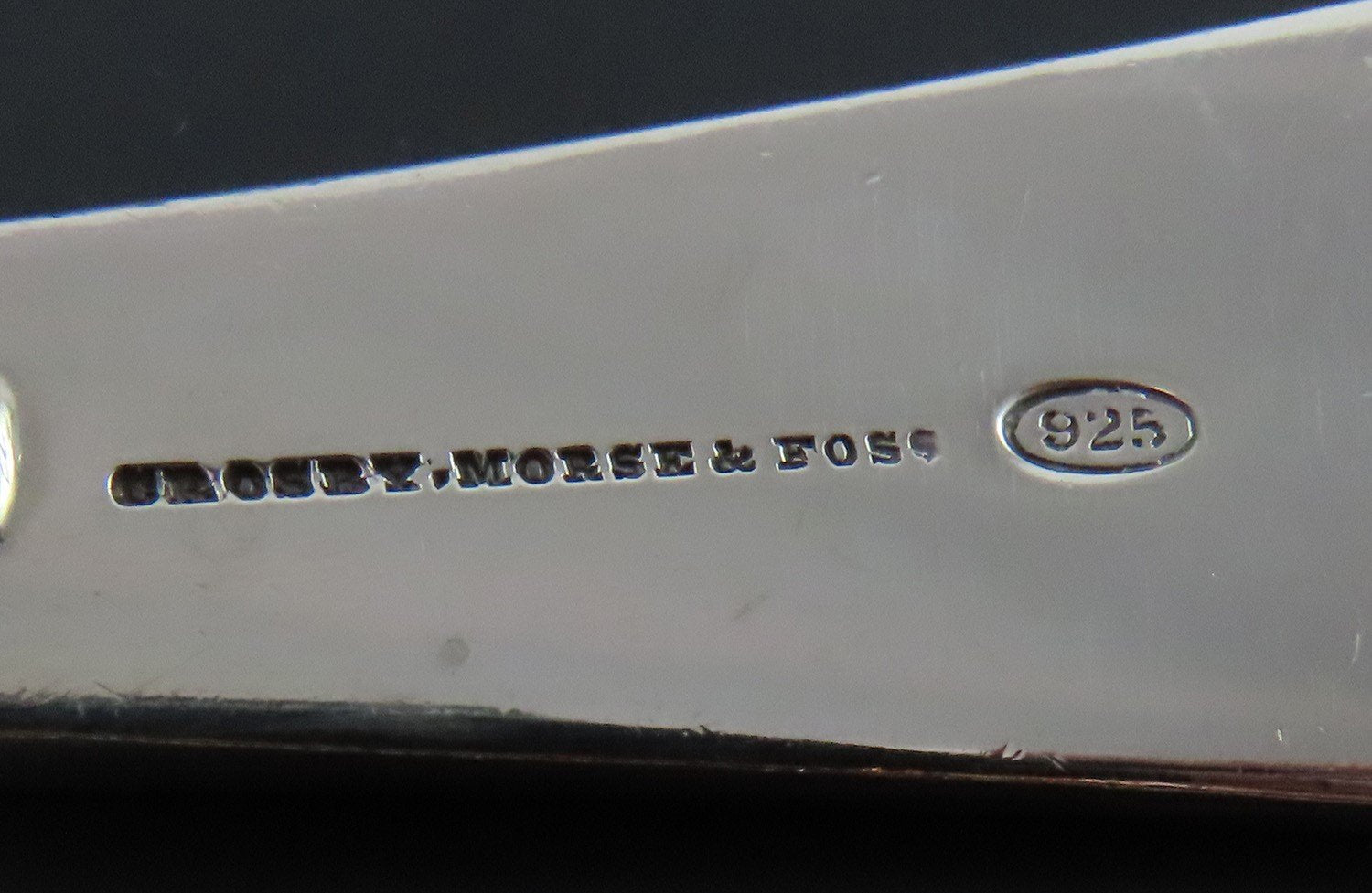 The reverse is marked 925 for sterling silver along with the maker's mark for Boston silversmiths Crosby, Morse, & Foss.
