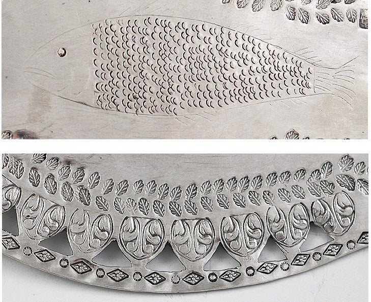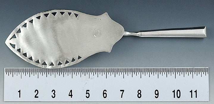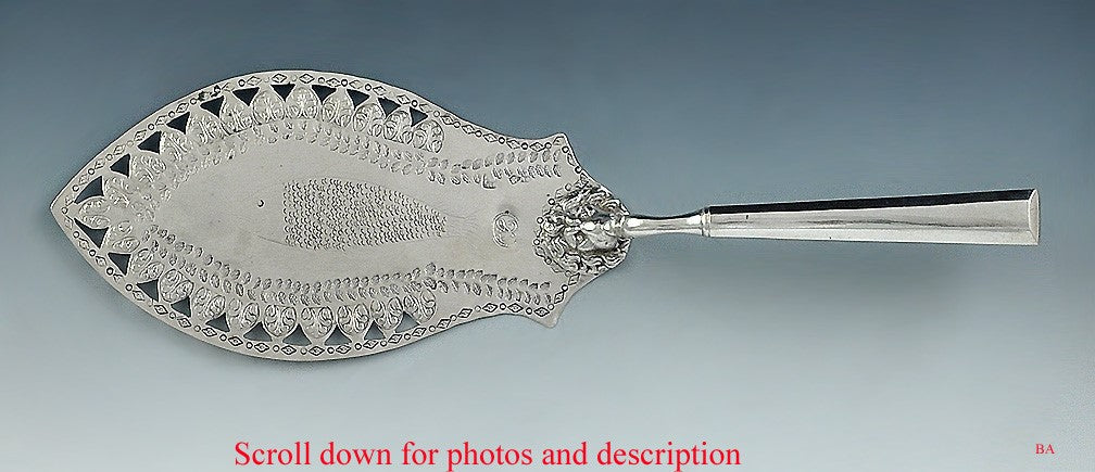 Large Antique European Silver Engraved Pierced Fish Slice Server