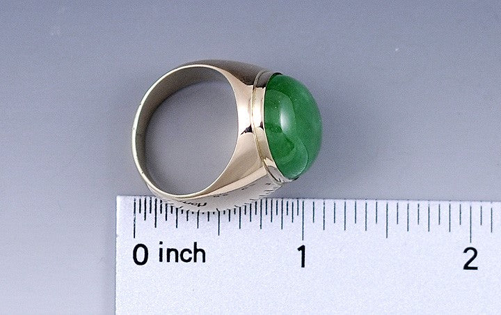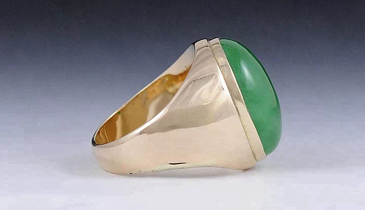 Large Jade Jadeite & 14K Yellow Gold Modern Ring Size 9