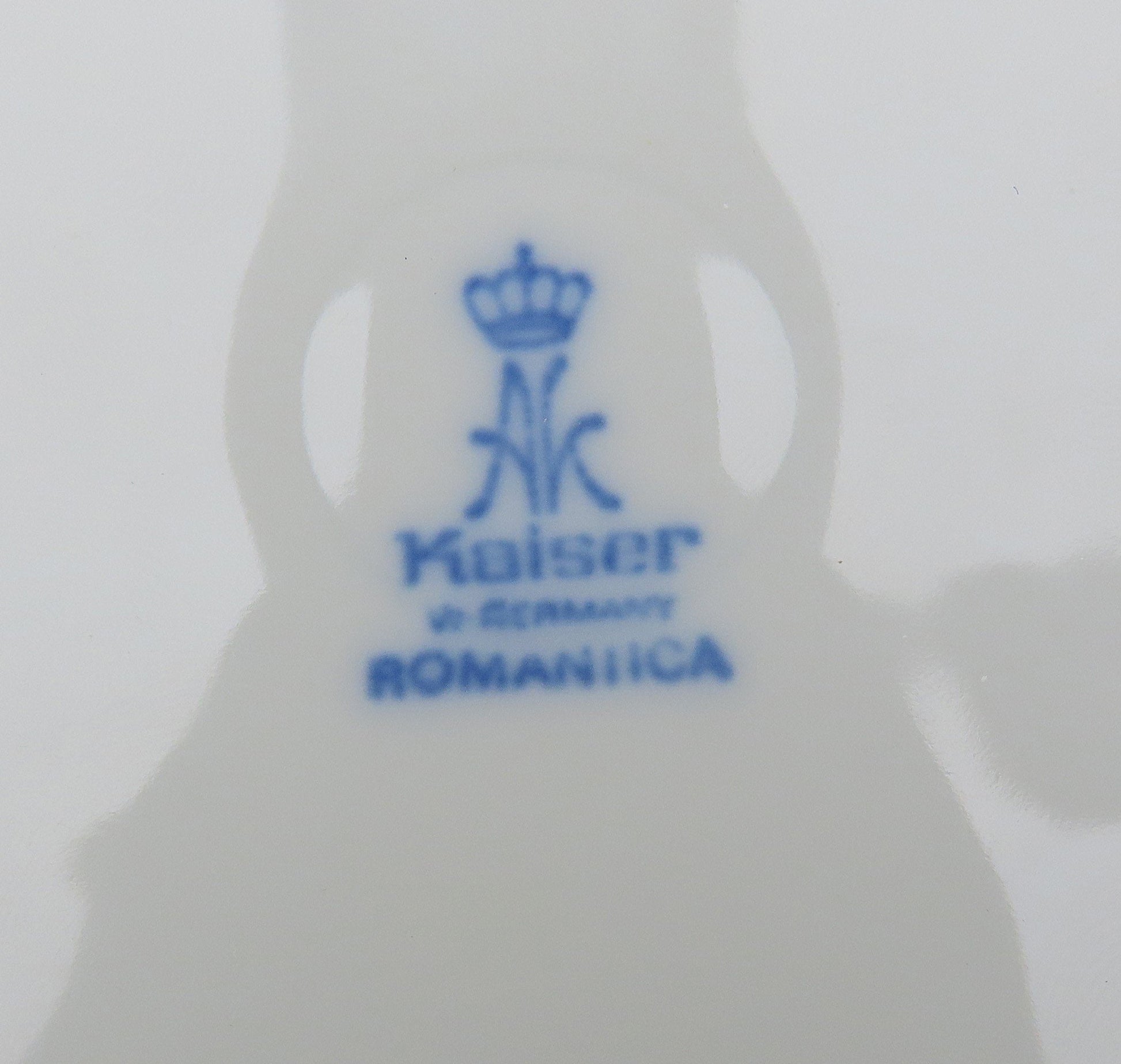 The piece is marked on the underside with the maker's mark for Kaiser and the pattern name “Romantica”. We have more of these exact dishes as well as other pieces in this pattern. We encourage you to view our page or reach out if you are interested in more of this collection.