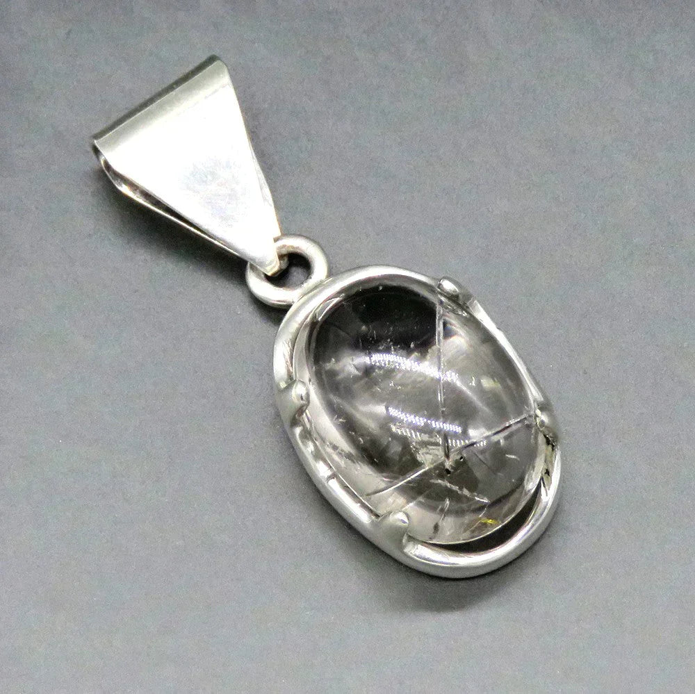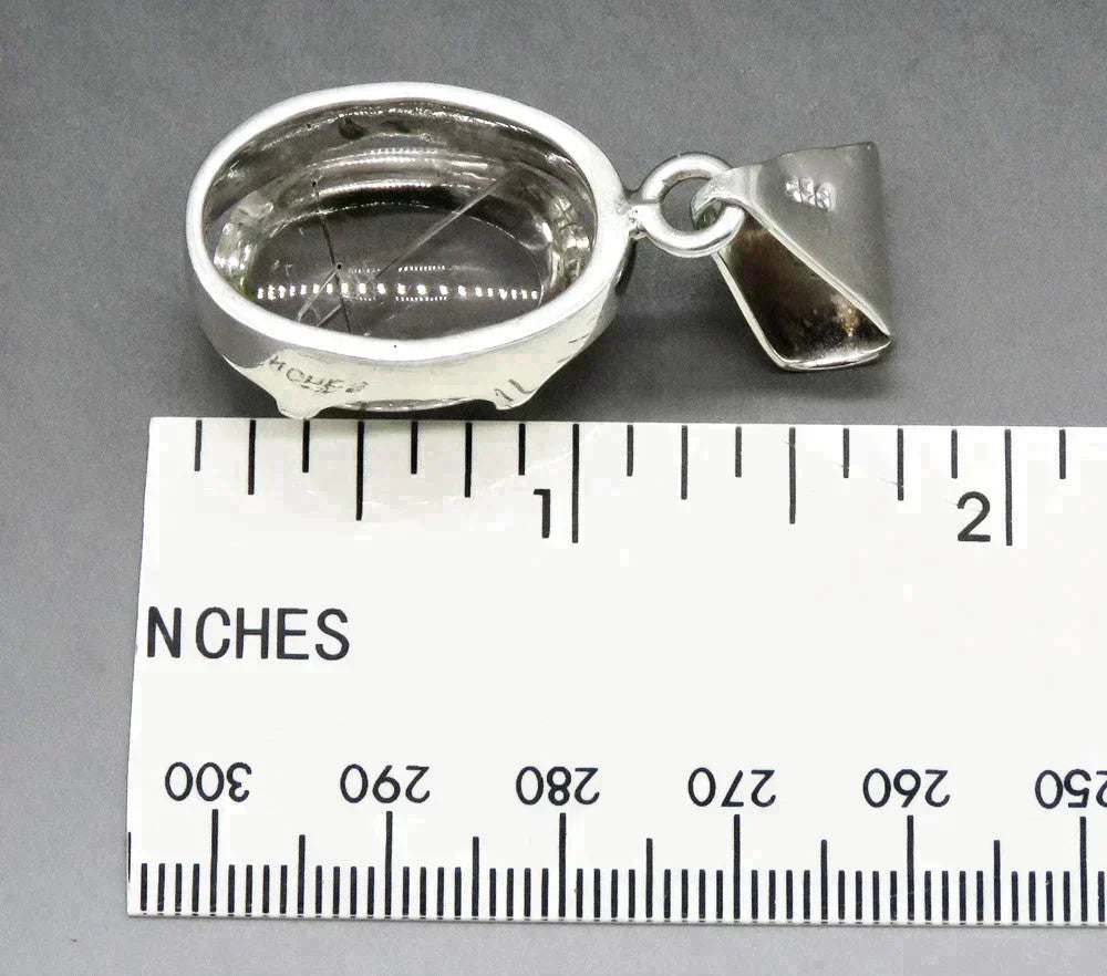Large Oval Rutilated Quartz and Sterling Silver Pendant