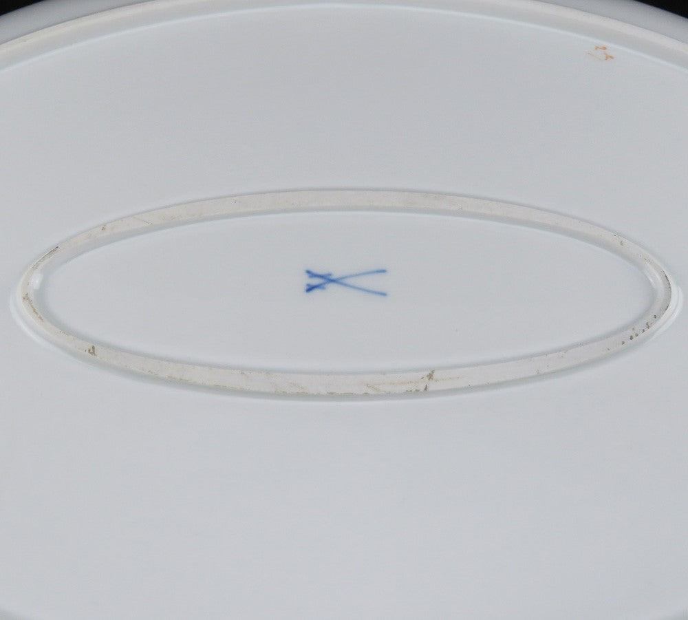 The platter is marked on the underside with the Meissen crossed swords mark in underglaze blue.