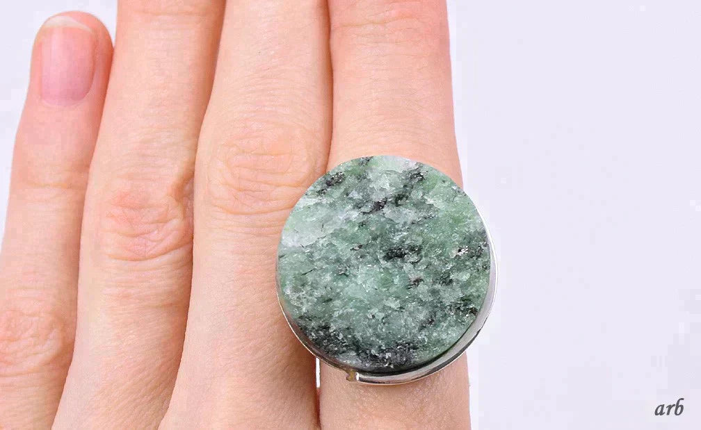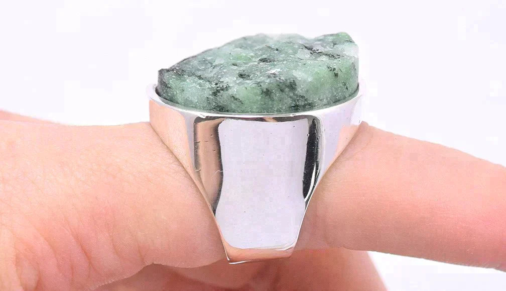 Large Sterling Silver and Sparkling Green Natural Stone Ring from Spain Sz 7