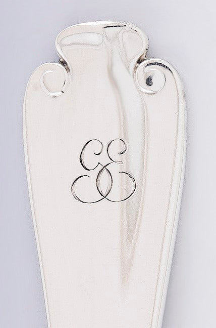 This piece is in excellent condition. The gold wash is in great shape. The server has seen only light use, if it's been used at all. There are no splits, no breaks, no dents, no monogram removals, and no repairs.