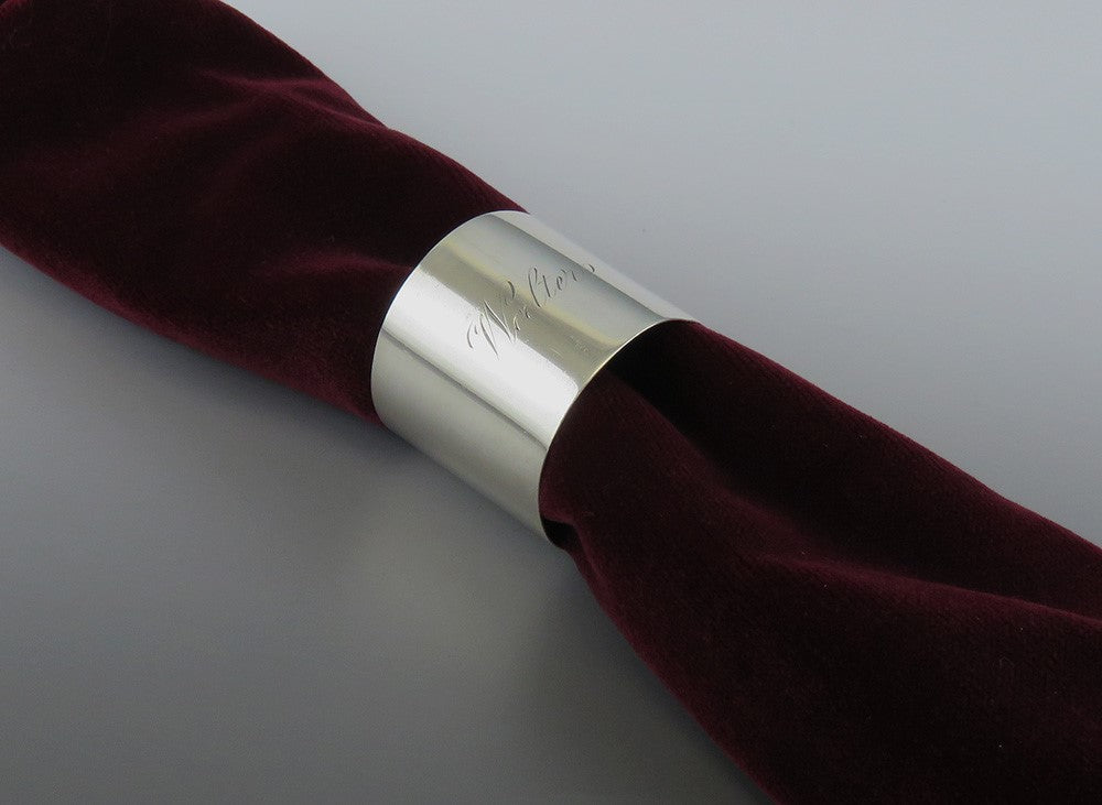 Presented is a lovely antique American sterling silver napkin ring, monogrammed 'Walters.' This piece dates to around the late 1800s. The napkin ring is made in a very simple yet classical style, and the engraving of the name is done very well in fluid script, undoubtedly by hand.