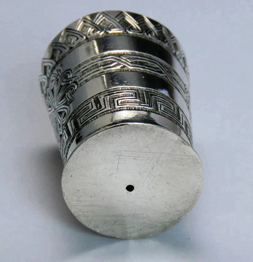 The decanter has two Turkish hallmarks on the handle. The set has been nitric acid tested and is guaranteed at least 900 purity silver.