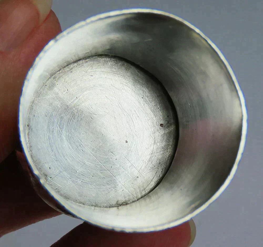This set is in great overall condition. The cups have test marks to the underside, but this is not noticeable unless they are turned upside down and inspected, this will never be seen during normal use. There are no splits, no dents, no monograms, no monogram removals, and no repairs.