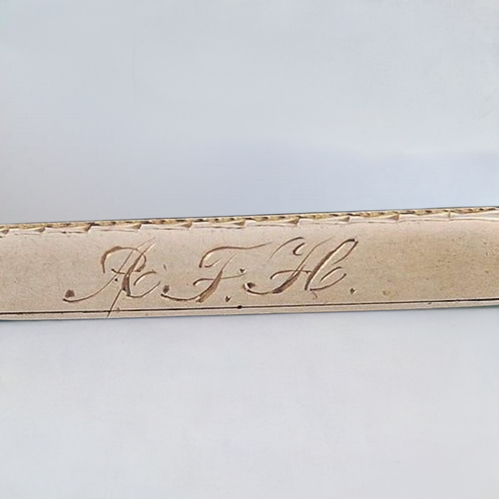 is set with a translucent white stone, which reads in black the initials 'H. T.