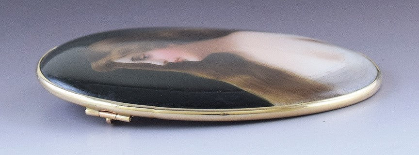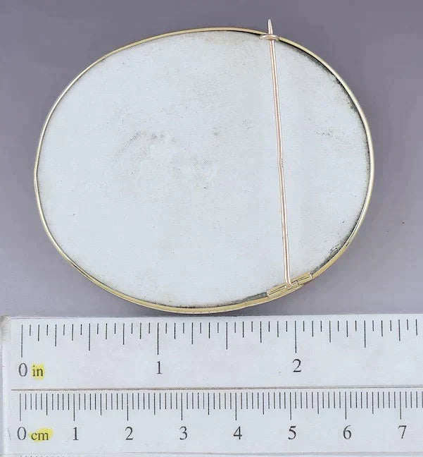 Late 19th Century Antique Miniature Portrait on Porcelain 14K Gold Frame Brooch