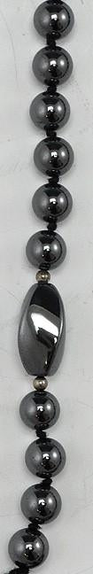 Long Genuine Hematite Beaded Necklace w/Silver Plated Pendant and Tassel