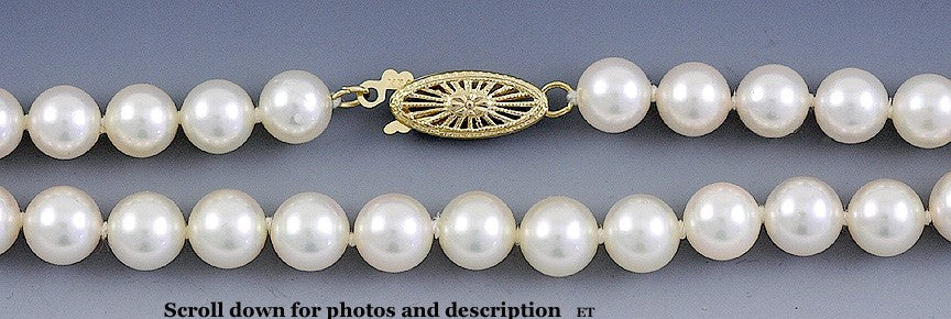 Long Pearl Strand Necklace 14K Gold Filigree Clasp