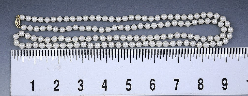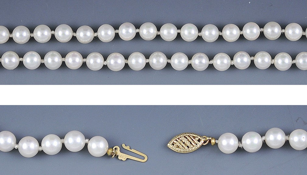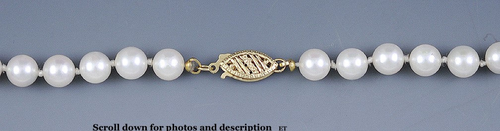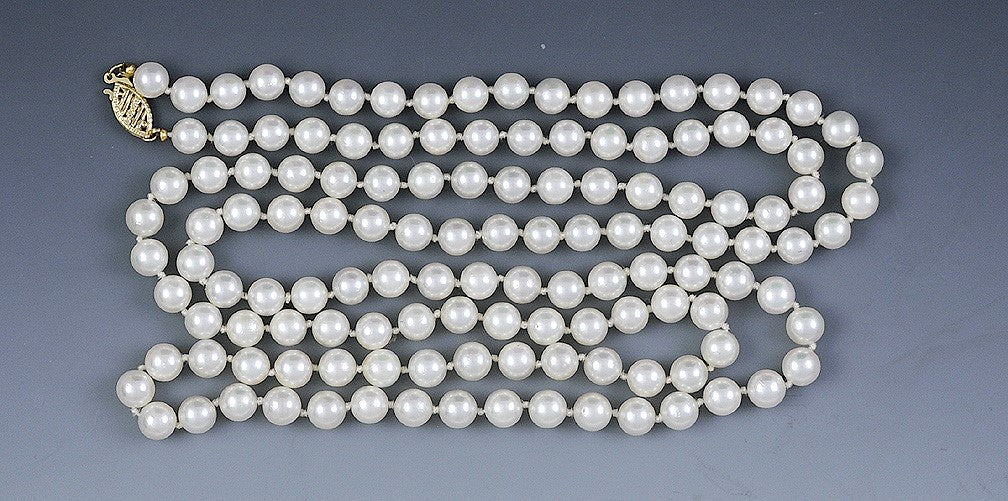 Long Strand of Pearls Necklace with 14K Yellow Gold Filigree Clasp