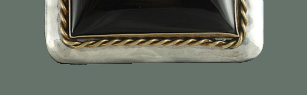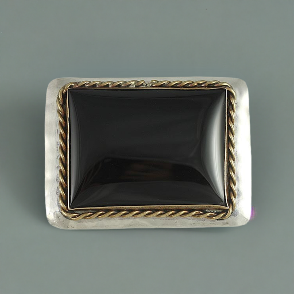 Louis Booth Modern Brass Sterling Silver Onyx Ropetwist Brooch Pin
