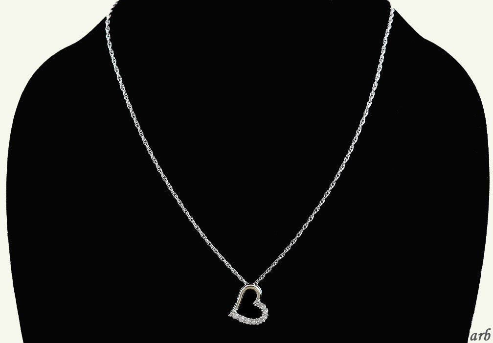 Lovely 10k White Gold Sterling Silver and Diamond Necklace w/ Open Heart Pendant