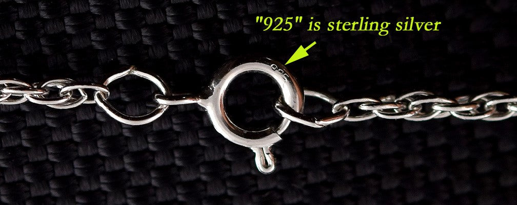 The clasp of the chain is marked "925" for sterling silver.