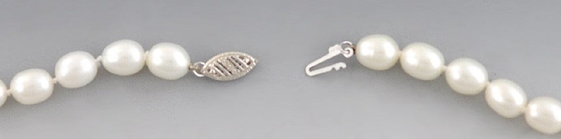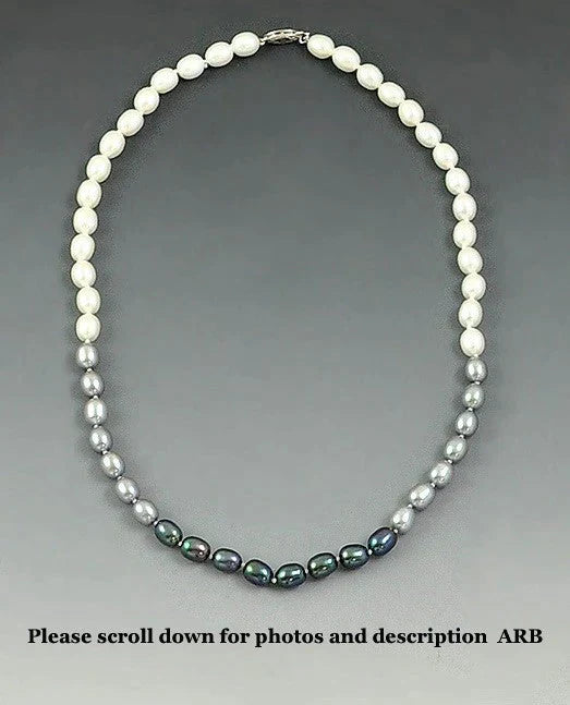 This pearl beaded necklace features genuine freshwater pearls, some of which are dyed black or gray for a fashionable gradated look. They are individually knotted, which is nice and taut.