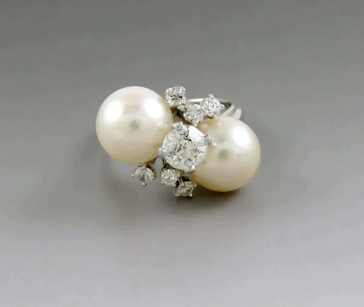 The ring is in great condition. The pearls and diamonds are well set with no losses or damages. There are no breaks and no repairs.