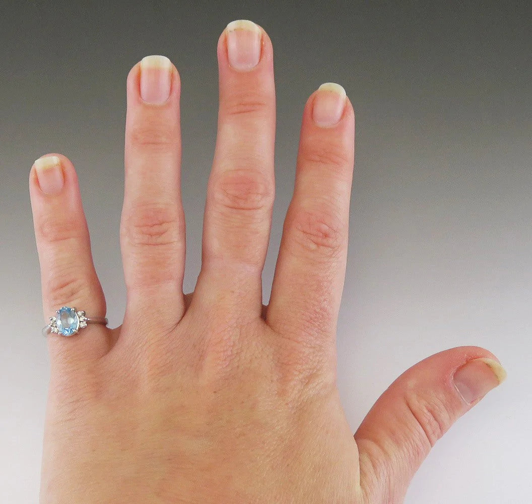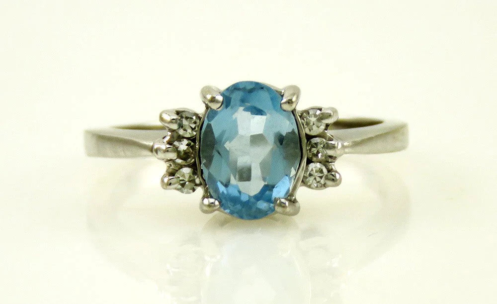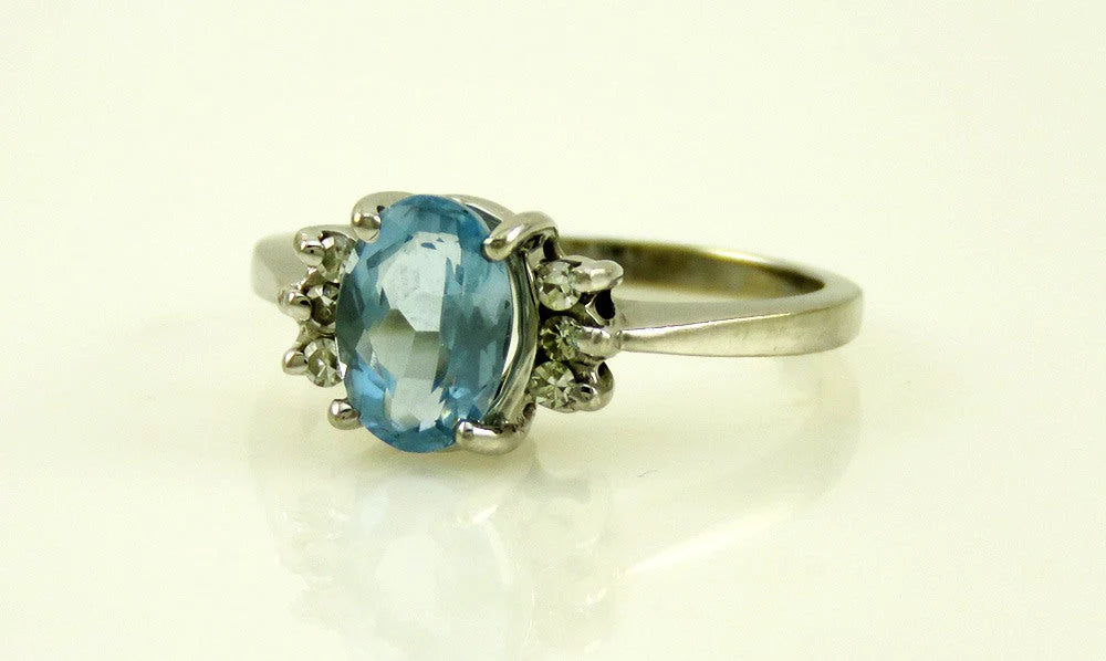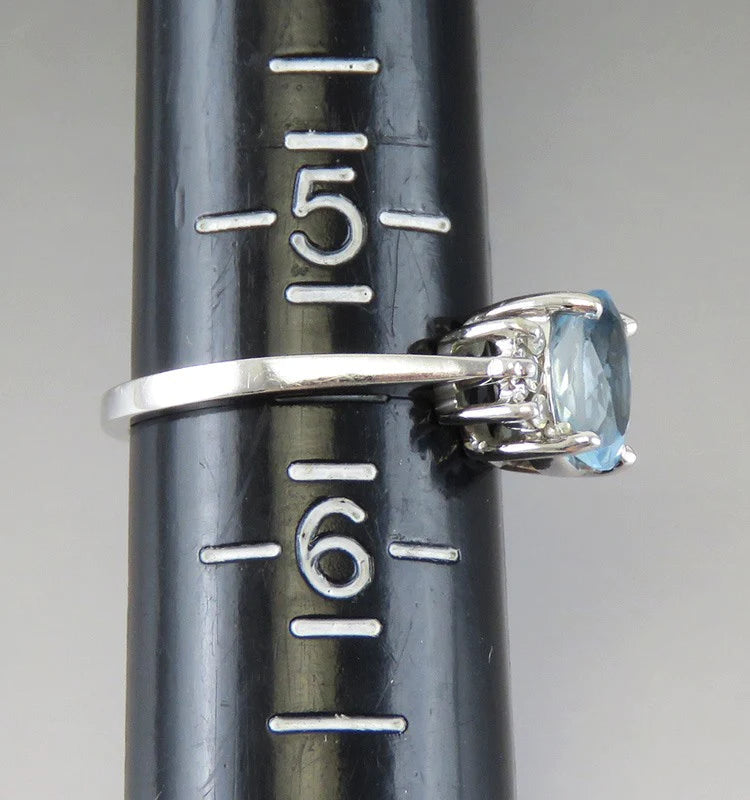 Lovely 14K White Gold Blue Aquamarine Diamond Ring Size 5.5