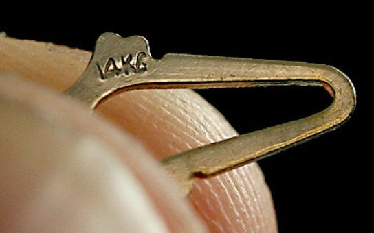 The necklace is marked 14K on the clasp. We have tested it with nitric acid and guarantee it to be 14K gold.