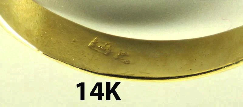 The inside of the band is marked 14K. Tested and guaranteed to be 14 karat gold purity.