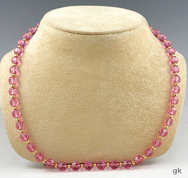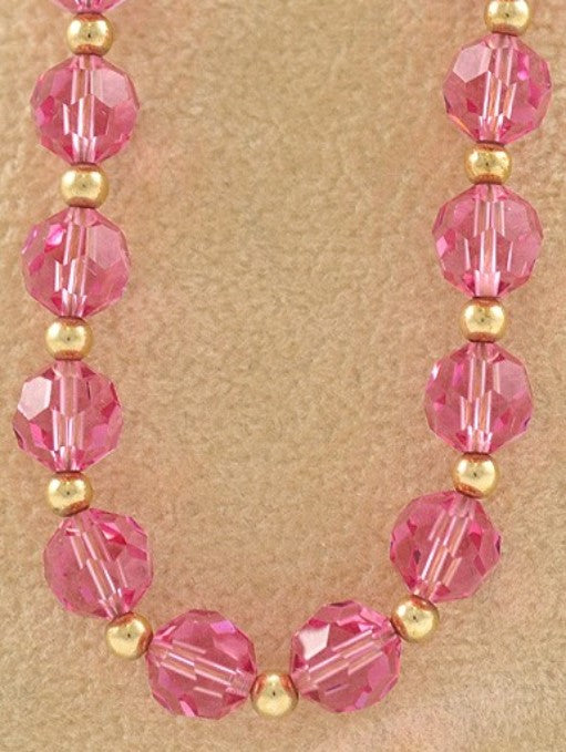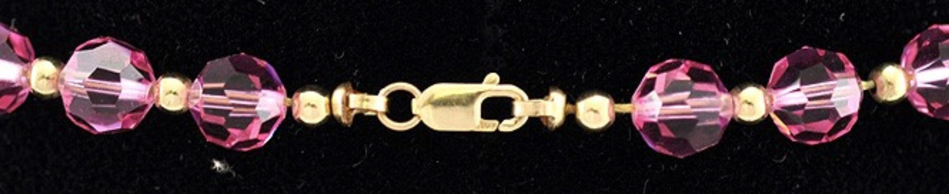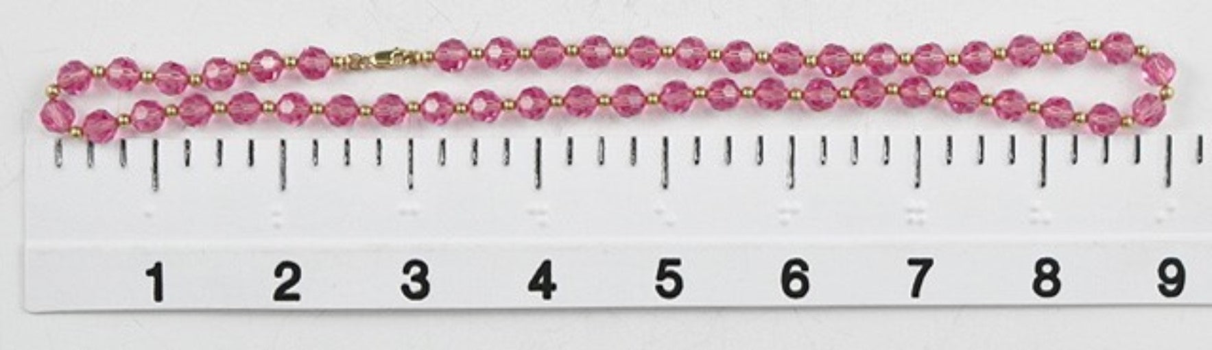 Lovely 14K Yellow Gold and Pink Glass Beaded Necklace 17"