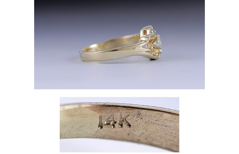 Lovely 14K Yellow Gold Openwork 3 Diamond Ring Ring Size 7