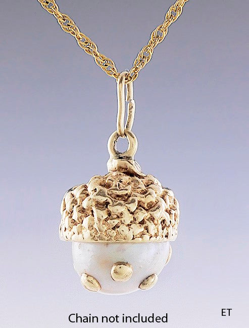 Lovely 14k Yellow Gold Pearl Oak Seed Acorn Pendant Charm