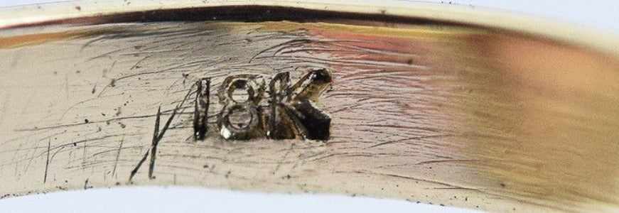 The ring is stamped and guaranteed 18 karat gold.