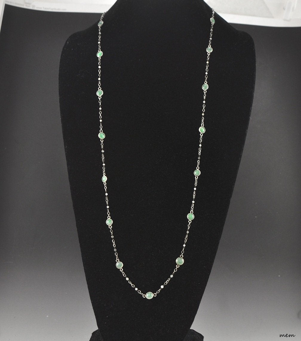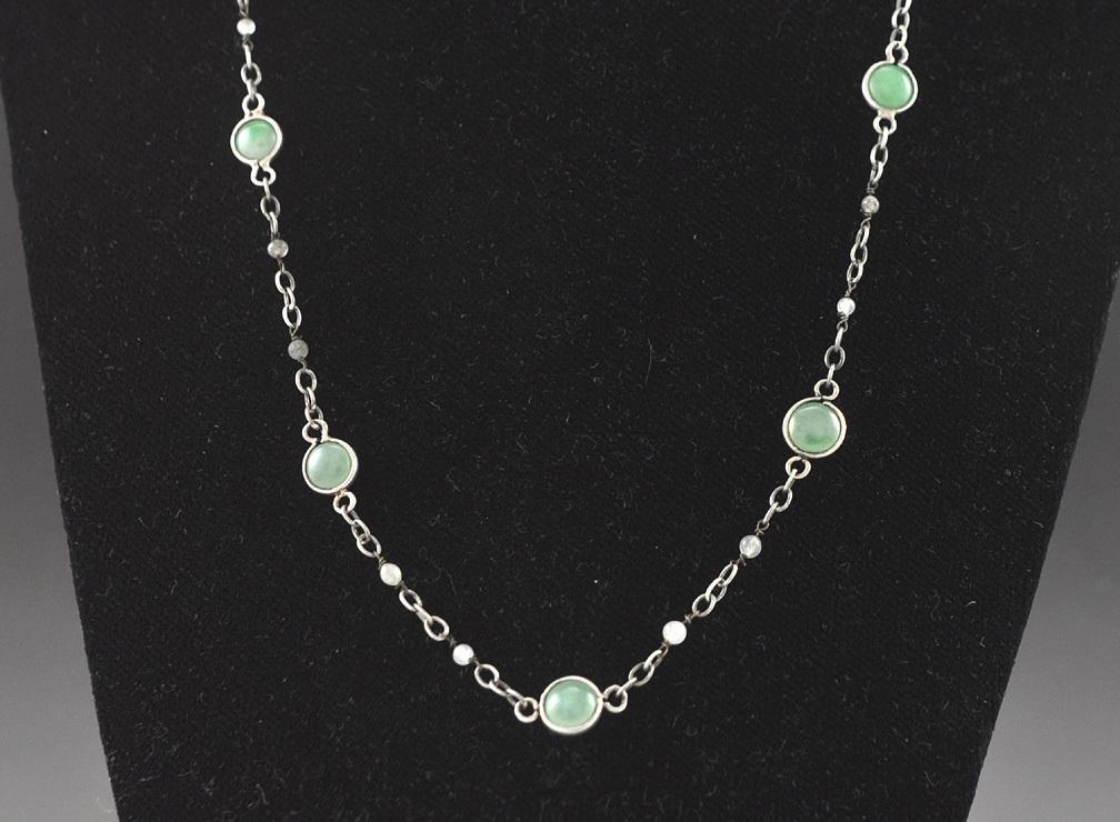 Lovely 800 Purity Silver and Genuine Jade Necklace 32"