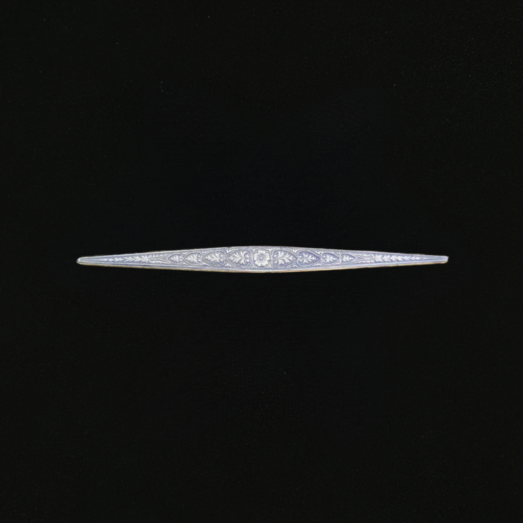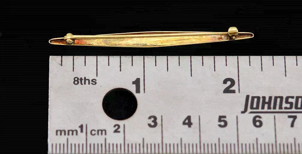 Lovely American Antique 14k Yellow Gold Tapered Bar Pin Blue Enamel