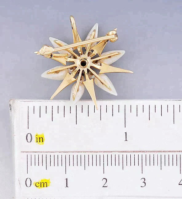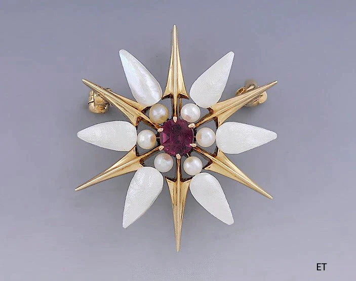 Lovely American Victorian 14k Gold Ruby Pearl Star Brooch/Pendant