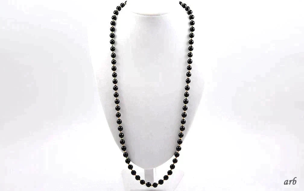 Lovely and Modern Necklace of 14k Yellow Gold and Black Onyx Round Beads 29"