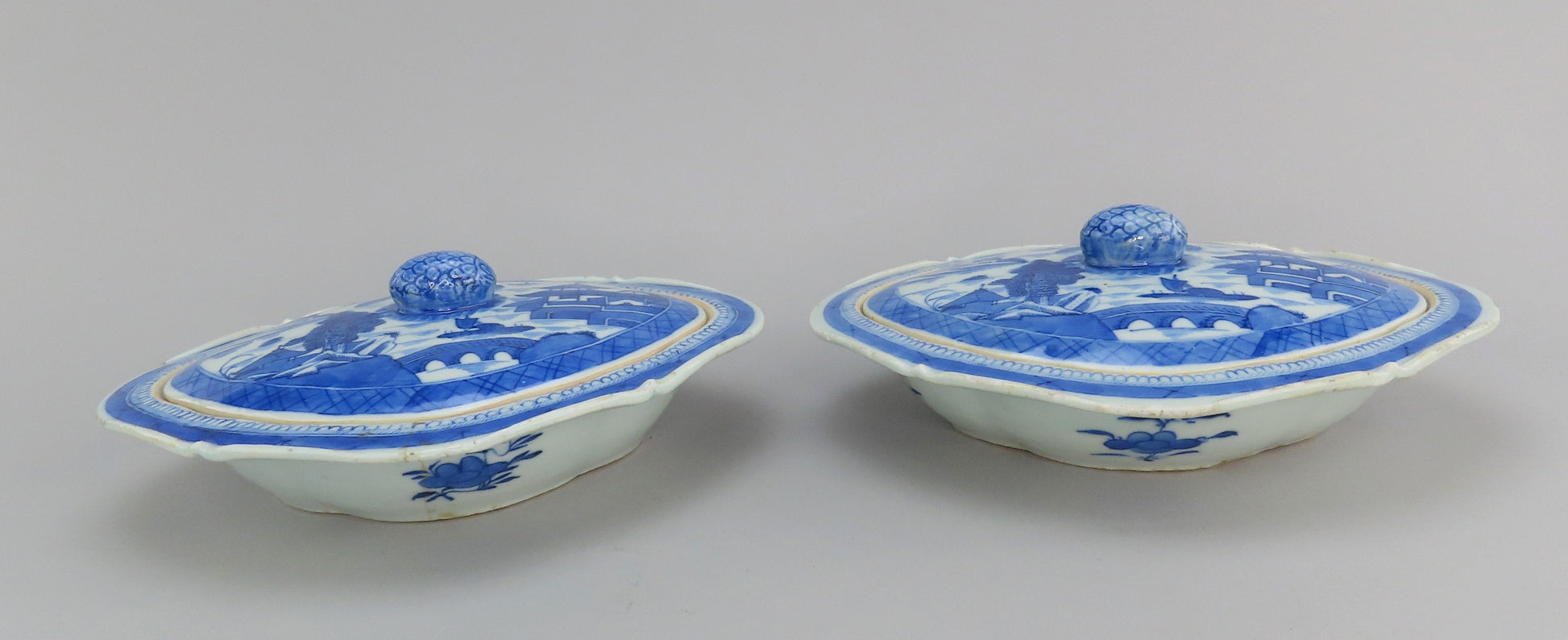 Lovely Antique 1800s Pair Chinese Canton Porcelain Covered Entree Dishes