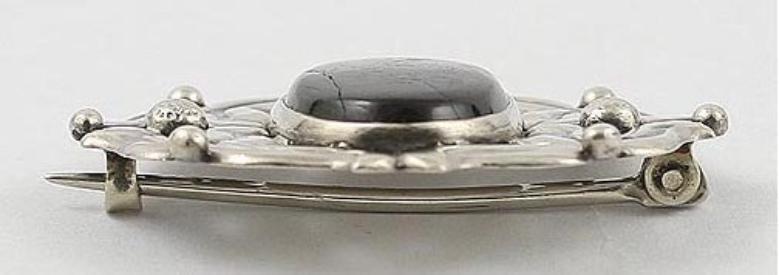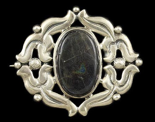 Lovely Arts Crafts Sterling Silver Iridescent Stone Pin Brooch