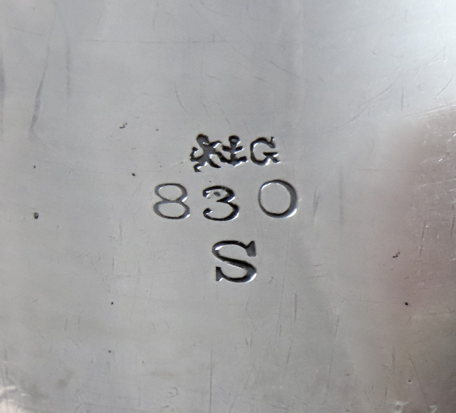 The interior edge is marked with the maker's mark for Gorham and a product number. This is an older mark, dating the piece between 1852-1865.