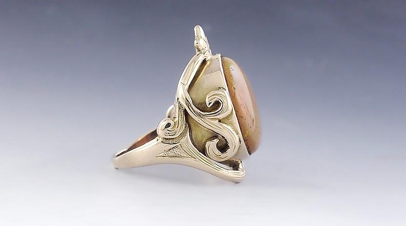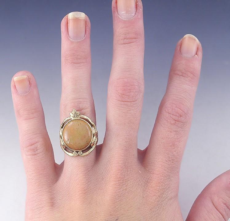 Antique c1900 Art Nouveau 14k Yellow Gold Opal Ring Size 6.25